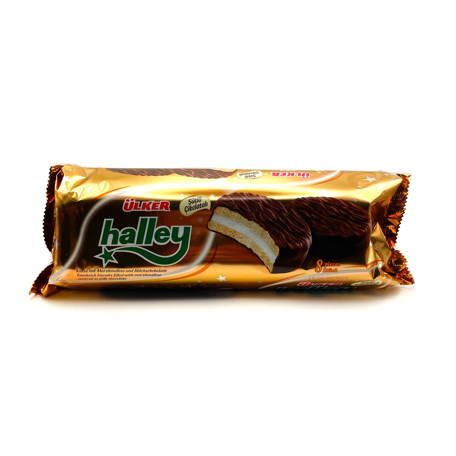 ULKER HALLEY 8pz (BISCOTTI RIPIENI DI MARSHMELLOW E RICOPERTI DI CIOCCOLATO) 30g x 8